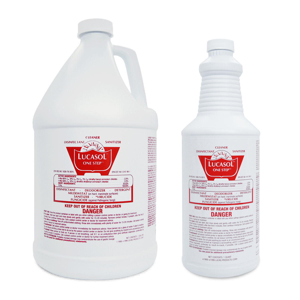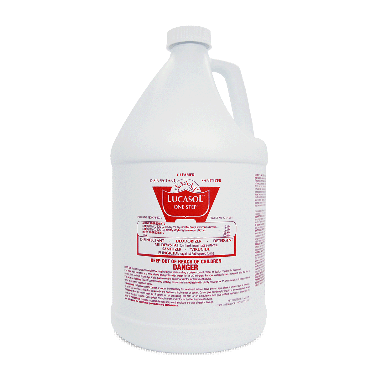 Lucasol® One-Step Disinfectant Concentrate is economical to use, requiring dilution before application, and supports sanitizing and disinfecting contact times when used as directed. The product is EPA-registered and included on EPA lists for use against certain viral pathogens when applied according to label instructions and required contact times.
