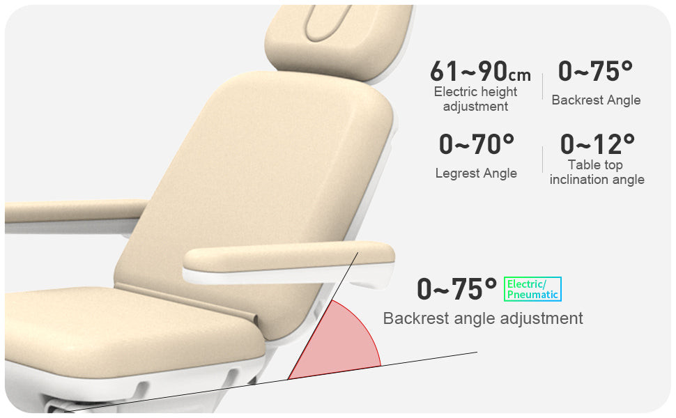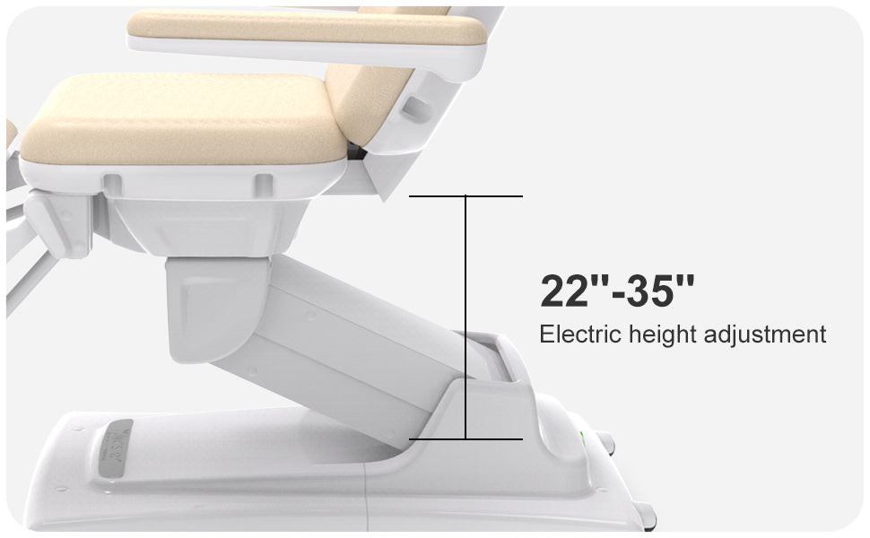 Constructed with a sturdy frame and premium materials, the Sonora chair ensures stability and long-term reliability. The low 22" height makes it easy for clients to sit down, while the 35.5" maximum height allows professionals to work comfortably. The lockable hand control enables smooth and precise adjustments for the backrest, leg rest, and overall height, ensuring an ergonomic and personalized experience.